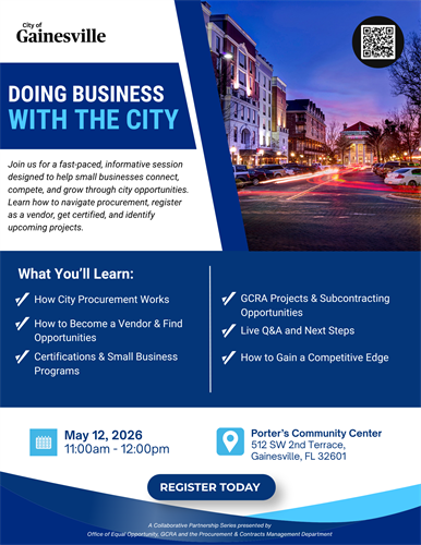Join the City of Gainesville Office of Equal Opportunity, GCRA and City Procurement and Contracts Management team for this in-person event.